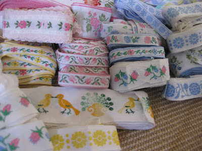 Last week, a bag of bindings, ribbons and trims arrived here from Greece where my mother-in-law has been visiting family (for the past 6 months!). She's back in Canada now but mailed these to me from Athens and, I'm so happy she did.